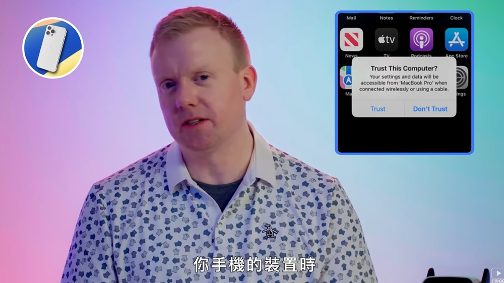 David Payette 也給予一個很簡單的辨識方法,當你插上充電器時,如果 iPhone 畫面跳出「是否要信任這台電腦」、Android 則是「選擇傳輸模式」之類的訊息,那請趕快拔掉,代表這充電器有問題,因為正常的充電器插上就只是充電而已,不會跳出這些訊息: