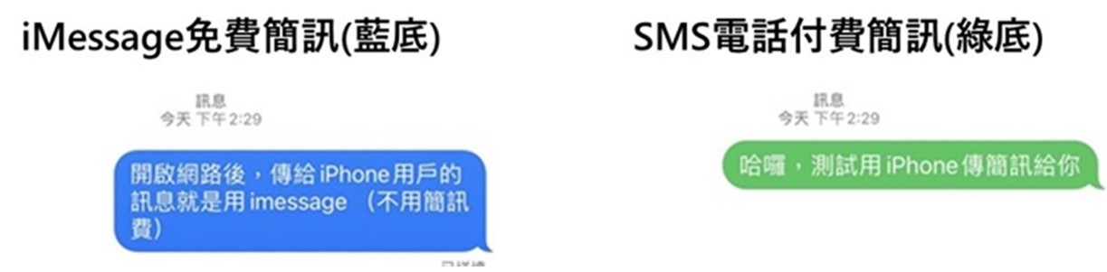 iPhone的SMS/MMS 訊息會以綠色泡泡顯示,使用iMessage服務則會出現藍底訊息,也造成年輕族群在同儕壓力下轉向使用iPhone。