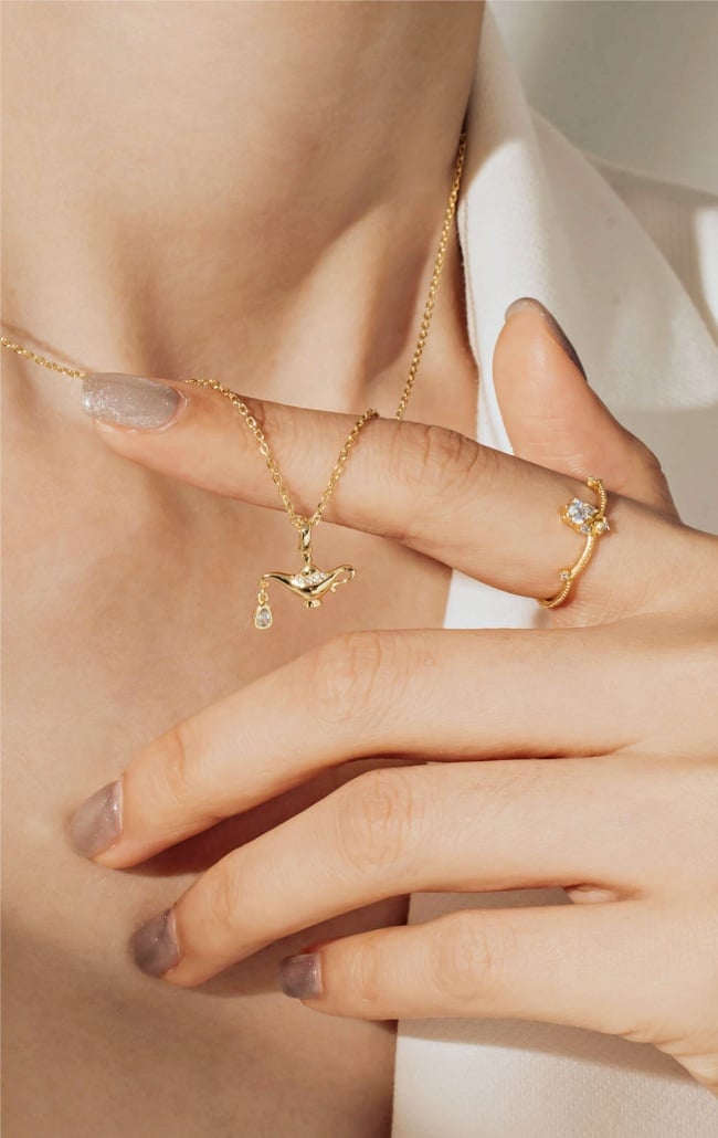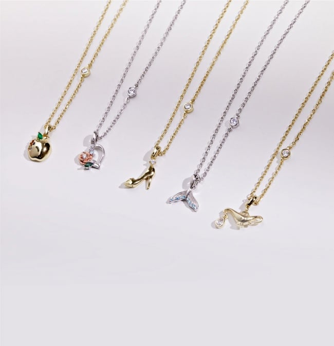 想實現三個願望?一定要入手《阿拉丁》茉莉公主的聯名項鍊,以18K金電鍍工藝奢華打造出金閃閃的魔法神燈,下方還裝飾水滴狀水鑽,彷彿神燈精靈隨時都會跑出來實現心願,最後的《美女與野獸》聯名項鍊,不只完美實體化「真愛永恆玫瑰花」,還搭配銀色心形,為你的戀愛應援加分。