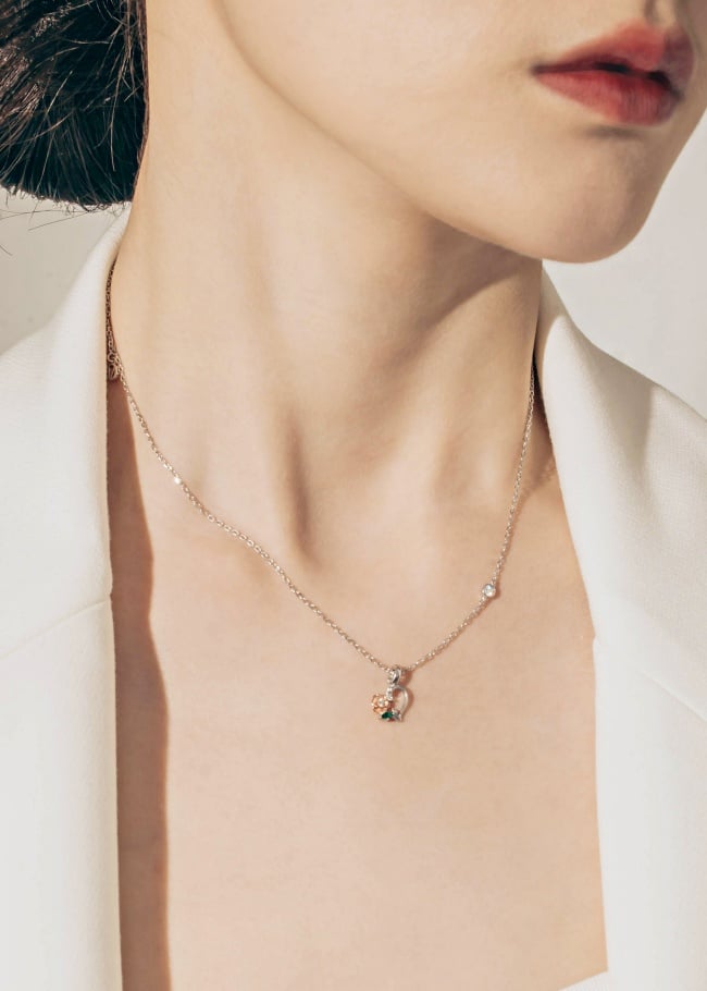 隔壁棚仙杜瑞拉公主以及白雪公主是把重要的「玻璃鞋、毒蘋果」留在這(笑),2款都採用18K金電鍍工藝材質,細緻勾勒出立體吊墜,上方還分別用彩色寶石、水鑽浪漫鑲嵌,王子在尋找的那位命中註定的人…戴上它就是你啦~