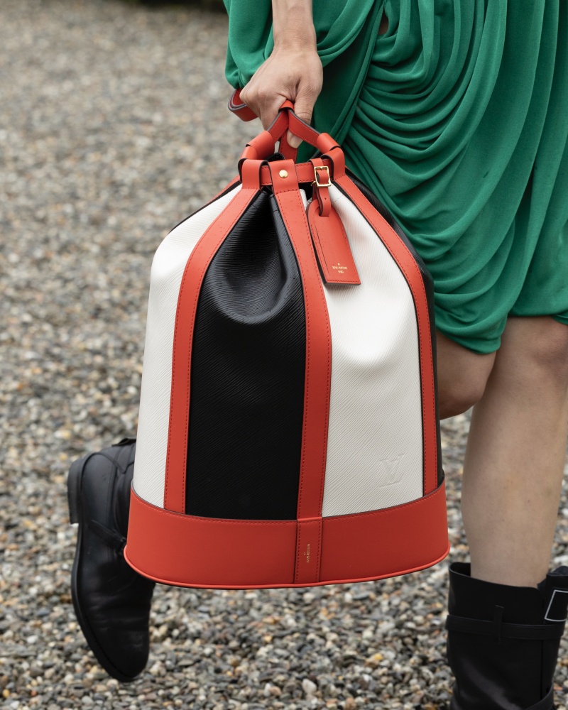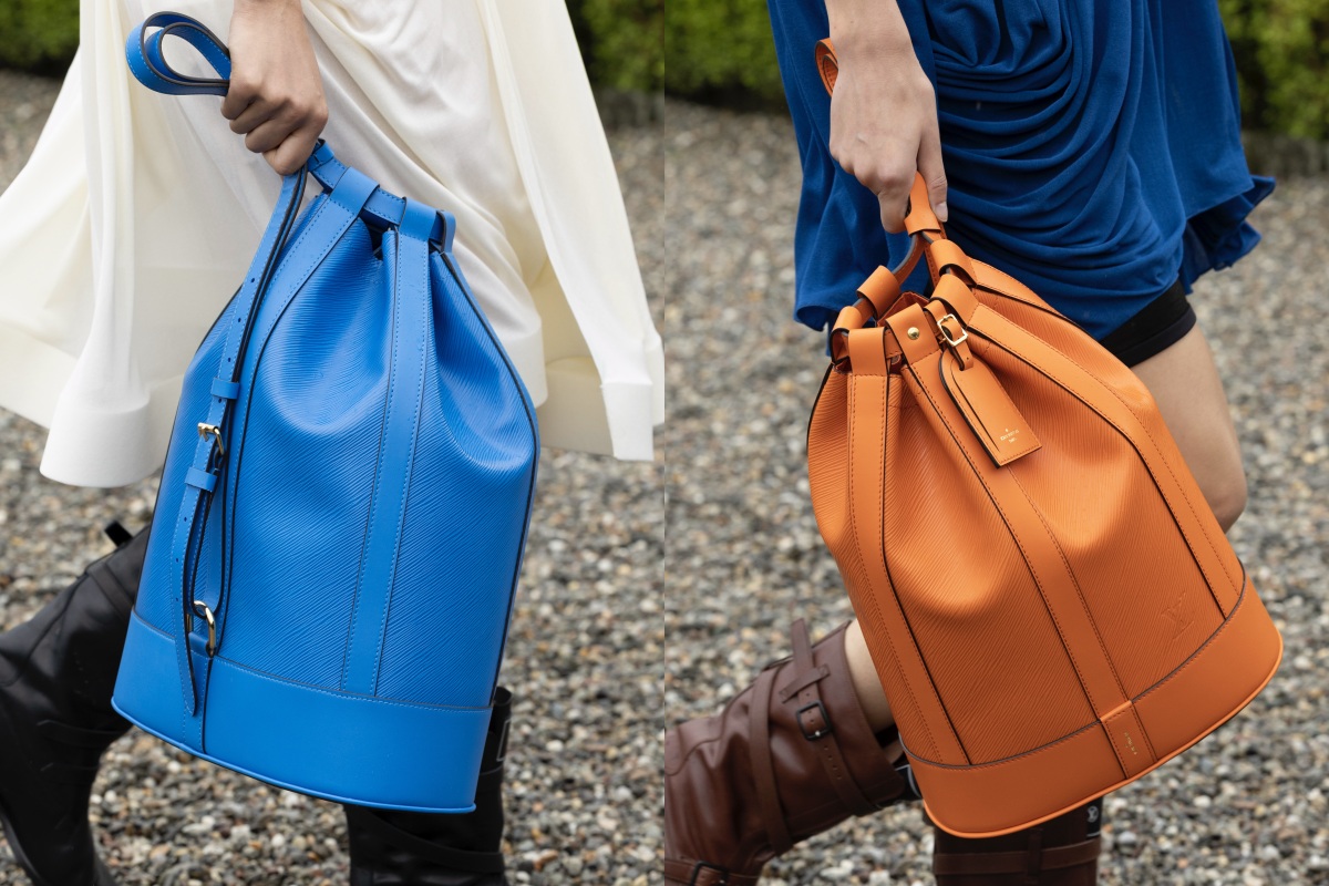 雖然水桶包很常以迷你的形式出現,但儂編私心覺得這麼大的水桶包,甩在肩頭上或是手提著都超級酷!皮革以品牌中較為低調的朋友「EPI水波紋」呈現,自帶紋理與細節,不過用色自然就不內斂了,不管是黑、白、橘的撞色拼接款,或是橘棕色、藍色的包款,都能讓女人酷翻天!