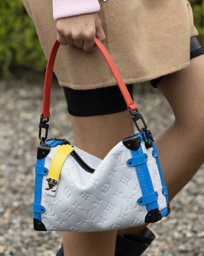 剛剛到首爾舉辦完的2023早秋系列,我們就提出了「Side Trunk」是否會成為下一款經典包?自從2023早春初登場後,這次創意總監Nicolas Ghesquière又將它帶到了義大利美麗島,硬殼的旅行箱包中間自帶的垂墜度,而這次用不同的姿態呈現,可以看到許多撞色的款式,好比說淺藍色的包身、正藍色的滾邊、亮黃色的點綴,可愛程度實在太逼人了!