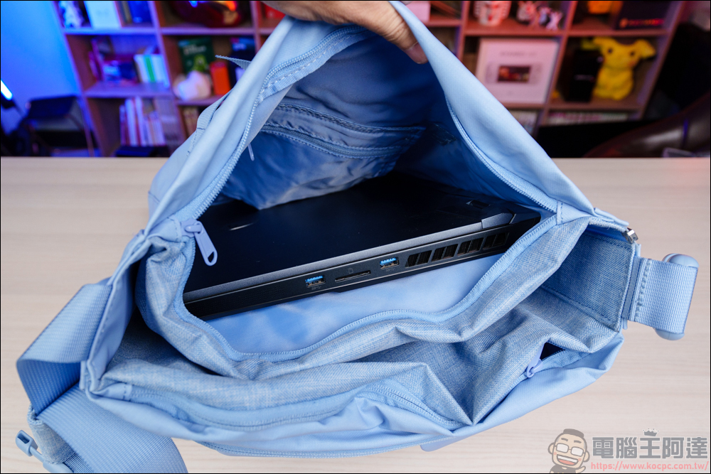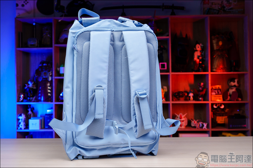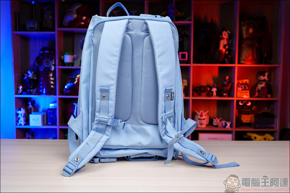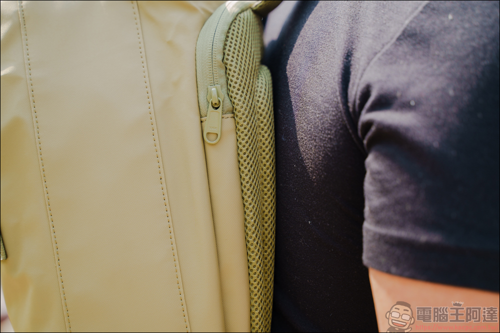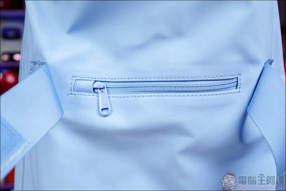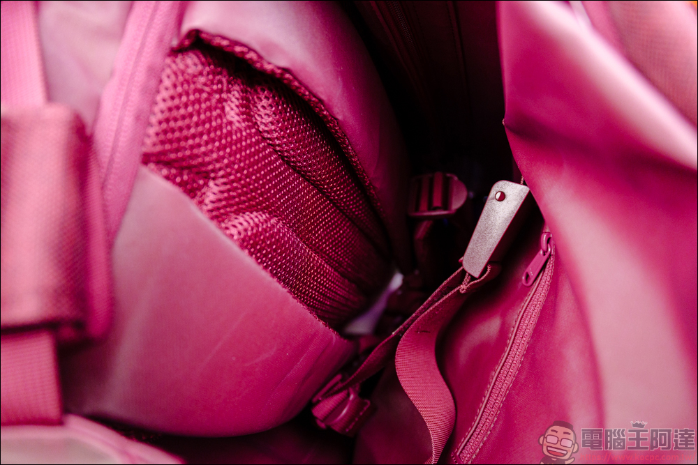 除了前後兩個內袋以外,靠背的這層為筆電層,內層用柔軟的透氣材質打造,有點像是軟墊那樣 :
