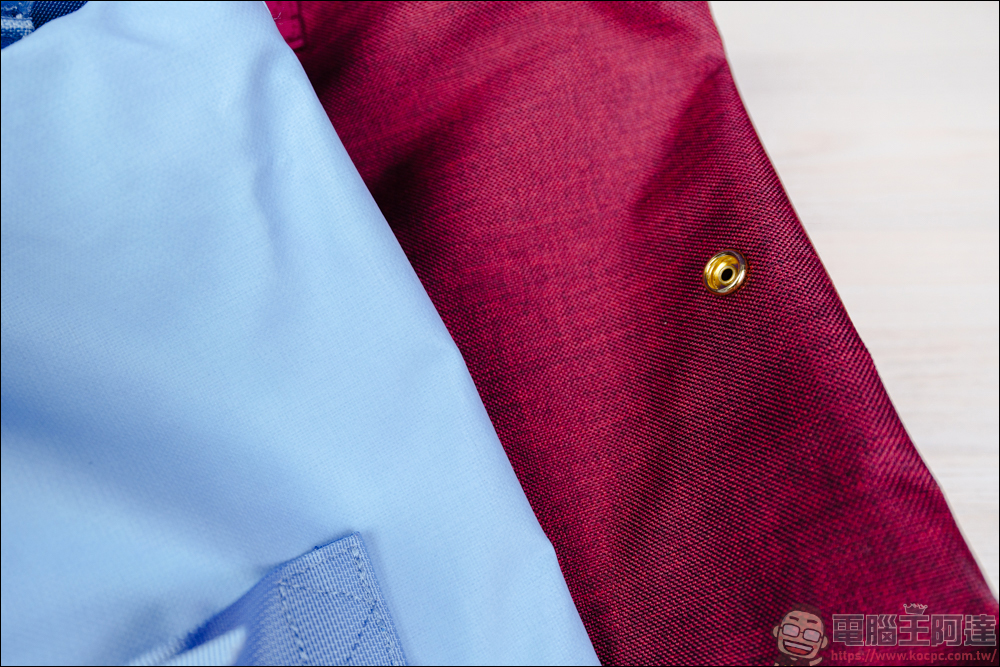 Flipbag 翻轉背包滿特別的一點,就是不管在後背、手提兩個型態下,中間的這層都是空心的,僅靠上下兩顆四合扣扣著,基本上這邊是無法讓你放東西的 :