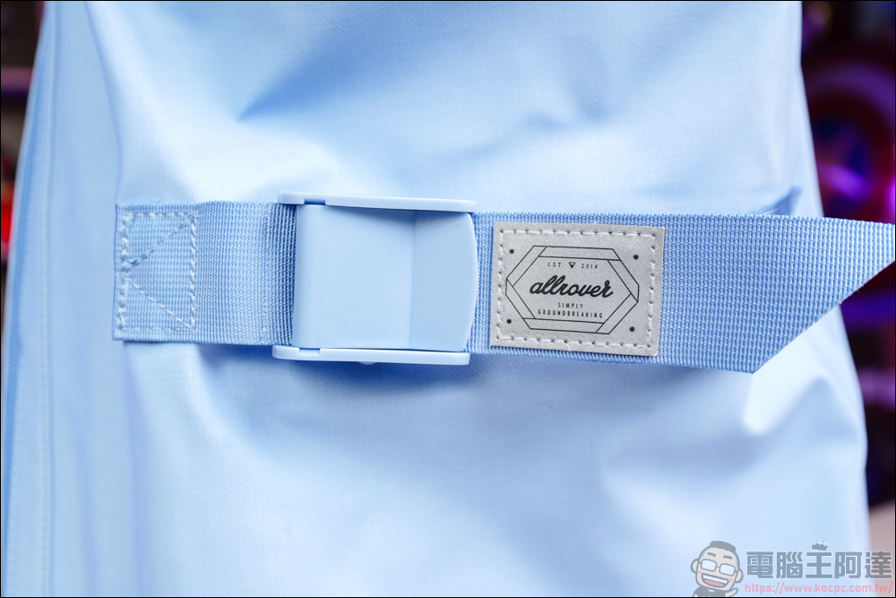 正面這裡有 Allrover 的 Logo 標,同時它也是個反光布標設計,在一些昏暗環境下可讓後方比較容易辨識。同時這裡還是個聰明扣的設計 :