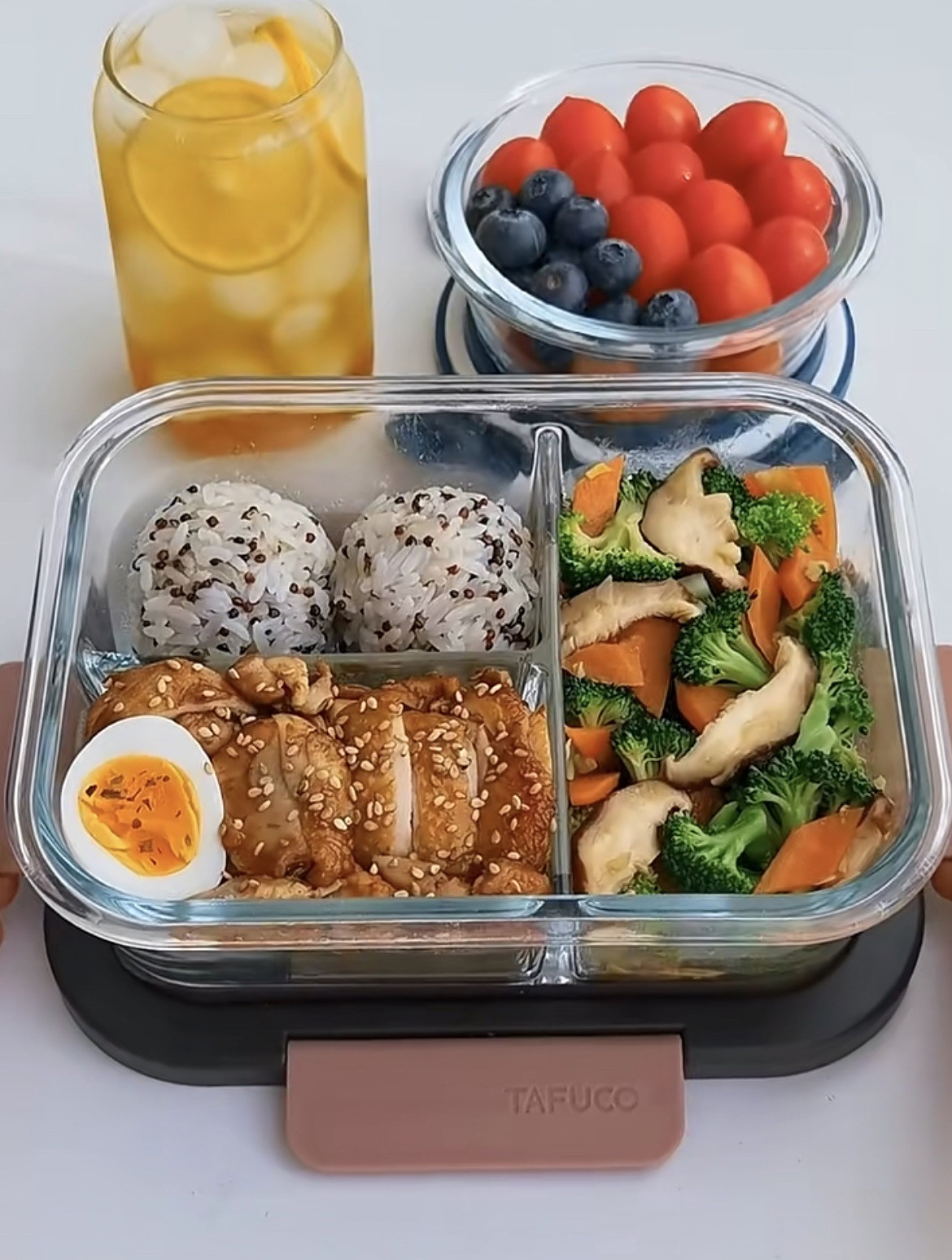 雞肉擁有減脂人最需要攝取的蛋白質,便當裡有肉類及蔬菜,才能讓營養均衡,搭配高纖藜麥可以幫助消化,熱量比白飯低又有飽足感。