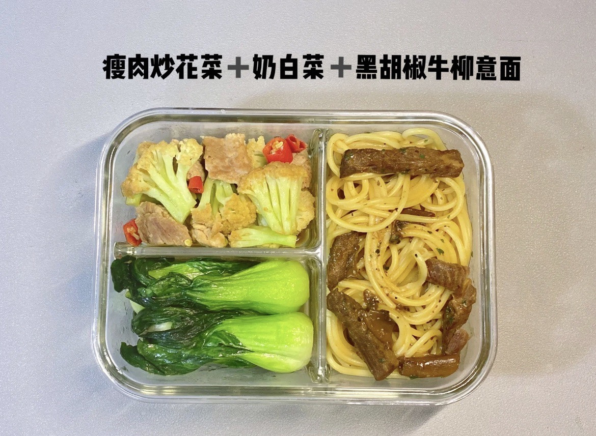 食材:豬肉片、白花椰菜、青江菜、牛肉、義大利麵、牛奶