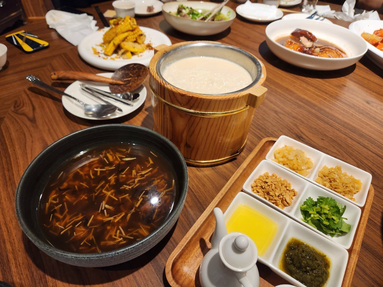 魯菜之一的「上湯豆腐腦」,搭配桂丁雞及木耳絲、金針菇煮出來的特製滷汁,再放上韭菜花醬、油潑辣子、香菜、花生脆、油爆蝦皮、大頭菜、花椒油及鎮江醋享用;最後的主食「老菜脯炒飯」,重點在於使用30年的菜脯,讓炒飯帶有一種天然發酵類似蜜餞的酸香味。