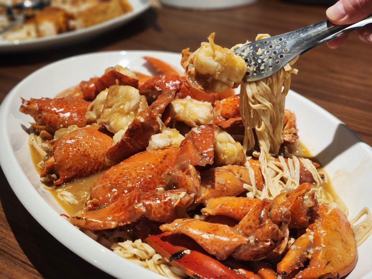 除此之外,同時有得到500盤的三盤之一「八味正龍鱈」是妞編輯一吃就愛不釋手的一道,使用8種不同的蔬果汁醃製,再用高溫油泡的方式,能吃到正龍鱈的外酥內軟的口感。另外使用了3隻大龍蝦製作的「上湯焗波士頓龍蝦/伊麵」,更特別使用以蛋黃做出來不加水的伊麵,可以吸附湯汁、讓這道菜更入味,濃郁滋味讓人一口接一口吃不停。