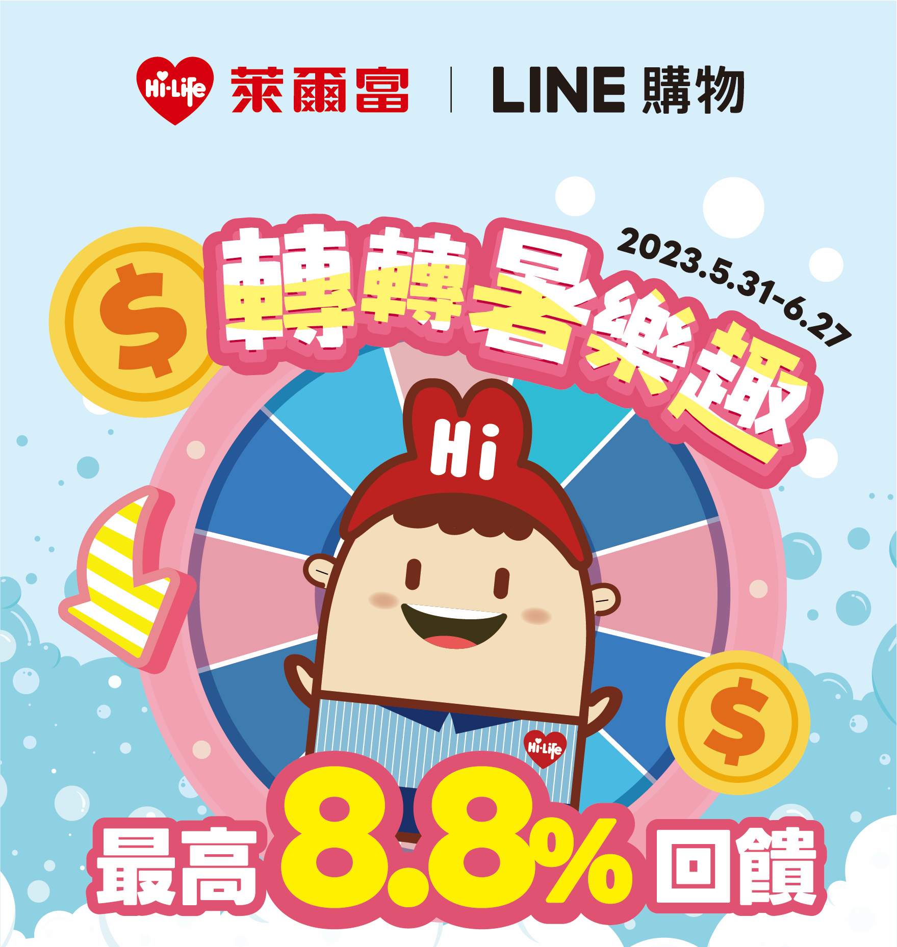 萊爾富轉轉暑樂趣,滿額最高8.8%回饋!遇見幾米限量週邊搶先預購,包含各式杯壺超可愛!Hi點優惠加價購這次精選多項美容家電和保養品,輕鬆美麗一夏;HELLO KITTY、卡娜赫拉、奇奇蒂蒂、酷企鵝等造型冰霸杯,還有會員專屬可愛價哦!2023/5/31-2023/6/27 萊爾富APP會員掃LINE購物條碼結帳,單筆滿200元享LINE POINTS回饋,買越多賺越多!