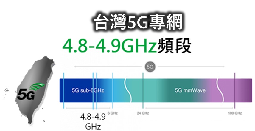 台灣5G專網使用的頻率為4.8GHz~4.9GHz(n79),共計100MHz頻寬。