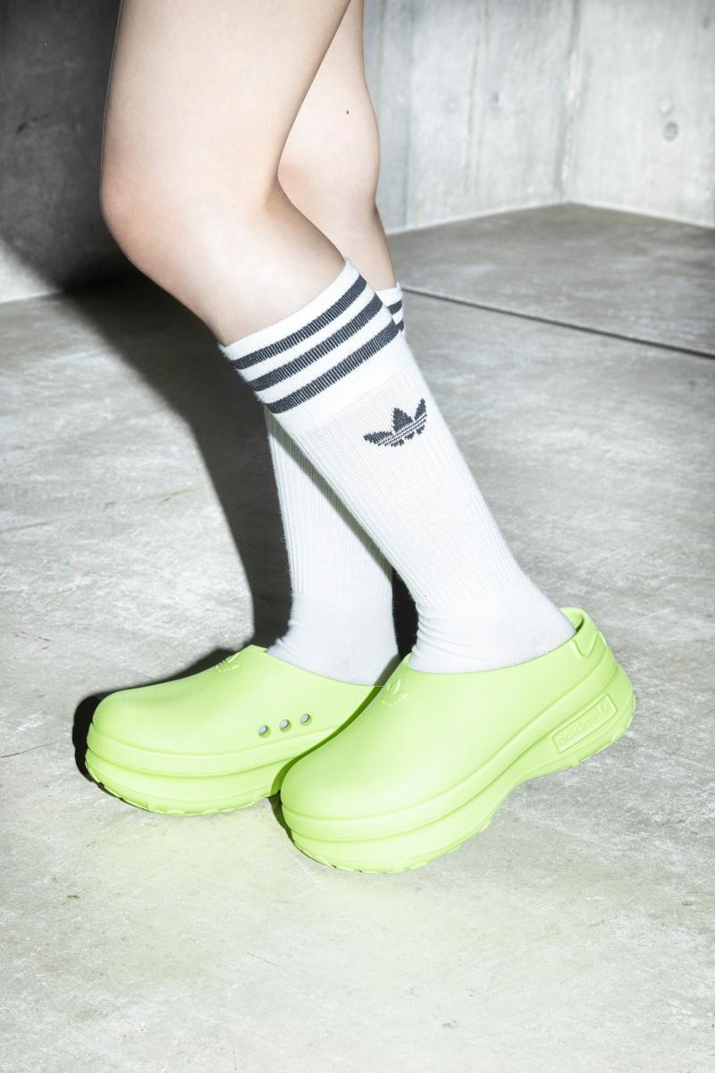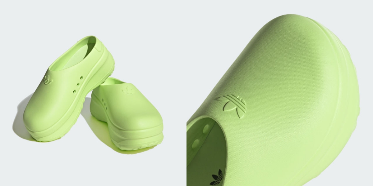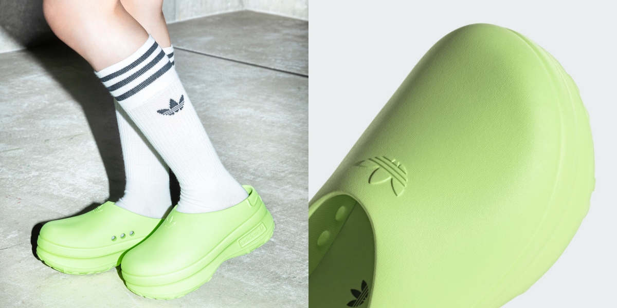 憑藉著與Balenciaga、小賈斯汀個人品牌Drew House的聯名,圓圓胖胖的Crocs布希鞋,因為其“怪時尚”的姿態,重新在時尚圈站穩腳步!同樣作為防水的塑膠鞋款,adidas Originals此時推出塑膠的拖鞋鞋款,從亮眼吸睛的色彩、天然再生的塑膠材質、圓滑可愛的比例,再到厚底的鞋底設計,從設計面的總和來說,不管是功能性或是可愛程度,全面的衝著Crocs來!
