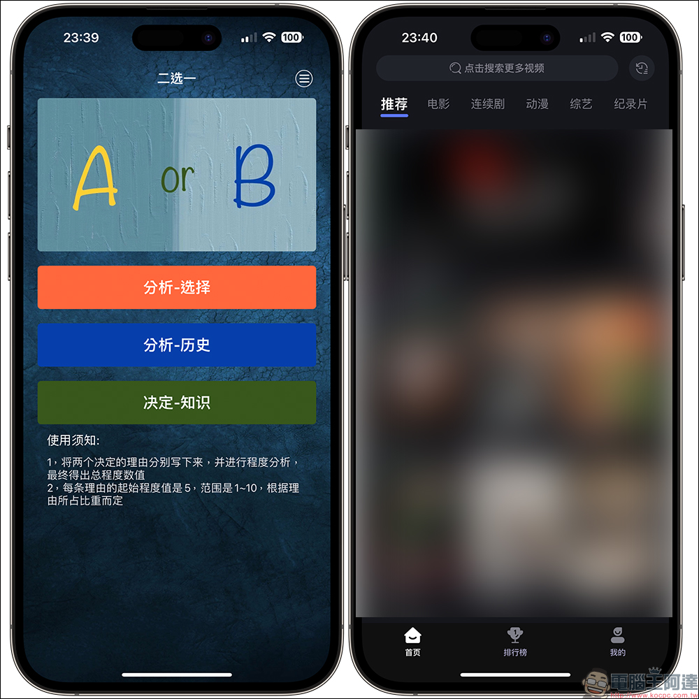 比起最近介紹過的幾款隱藏影視 App ,這次的「決定事情」App 的解鎖方式更簡單一些。當首次開啟 App 後,連續點擊 5 次畫面上方的「二選一」,接著將 App 從後台整個關閉再重新開啟,便能看到原本的工具程式已經解鎖成影視模式囉!