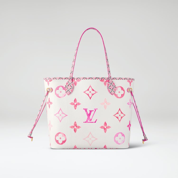 「Neverfull MM」身為 Louis Vuitton 最具代表性的包款,當然也不能缺席這場度假派對!這次品牌改以粉色系作為主軸,讓這款經典包變的活潑、可愛。(商品售價:NTD80,000)