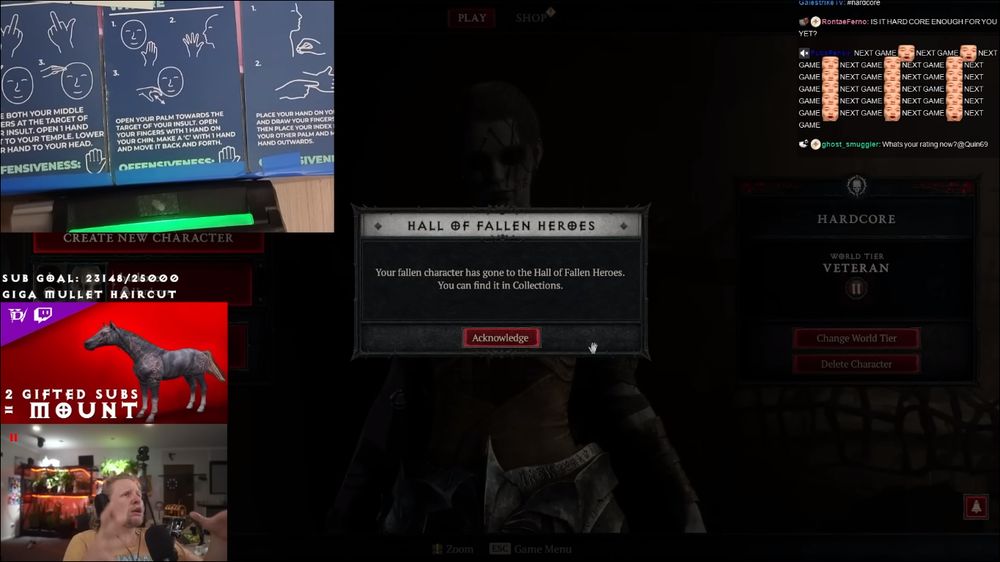 如果大家對 Quin69 大大還有印象,大概還記得之前我們曾報導他在《暗黑破壞神4》遊戲中瘋狂課金,達到一萬紐幣(約合新台幣 19,123 元),結果寶物刷出來的機率低得嚇人的事情。最近這位名主播在遊戲中挑戰 Hardcore 模式時,遊戲卻在破關後要回城的讀取畫面中當機了。由於專家模式的特性,很多之前努力練的等級、刷到的寶貝等物品,都在當機的瞬間,直接化為烏有。