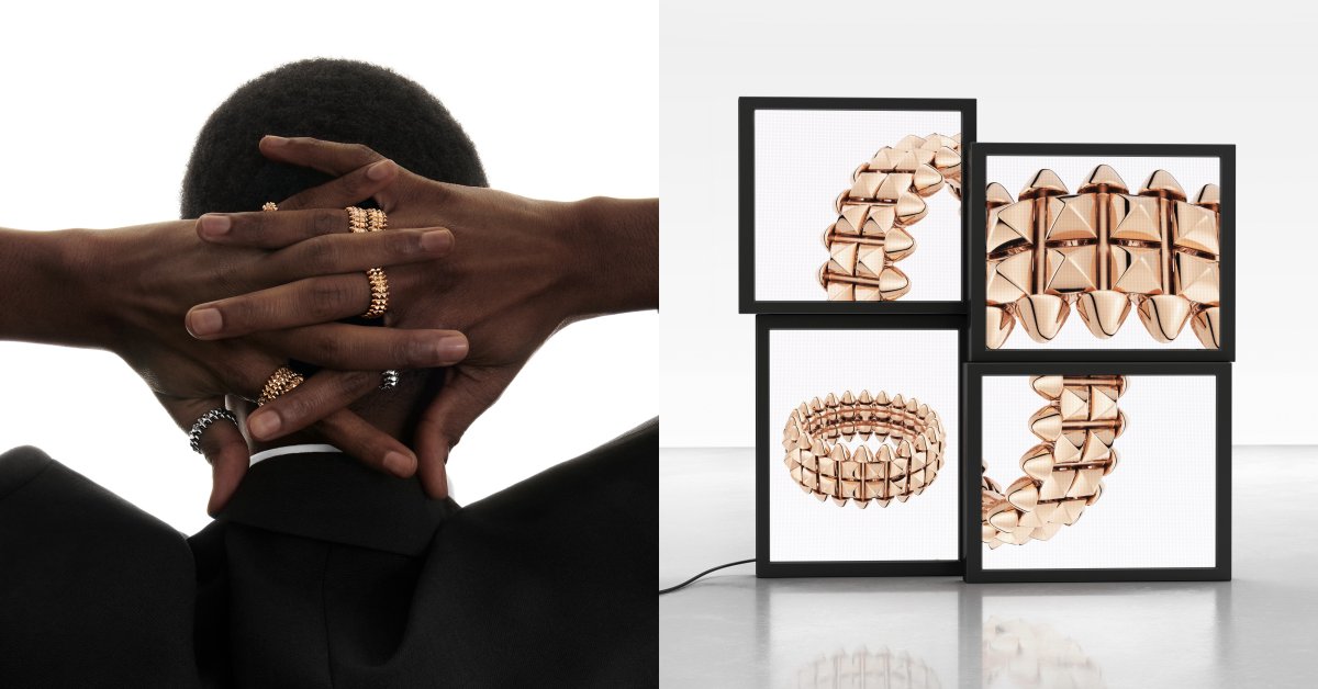 2023「Clash de Cartier」系列的新設計以「雙重」為主要元素,運用成雙成對以及有質感的配對細節,創造出一系列的戒指、項鍊、手鍊,中央的雙排clou carré巴黎飾釘不僅搶眼,更讓整體設計顯得有分量,並附有黃K金、玫瑰金、以及鑲鑽玫瑰金的材質選擇,保留龐克美學兼顧柔和的膚觸,其中,手鍊和項鍊採用一體成形的搭扣,創造出驚豔的立體視覺效果,在Lily Collins的演繹之下更呼應了品牌所提倡的「突破框架」之理念。