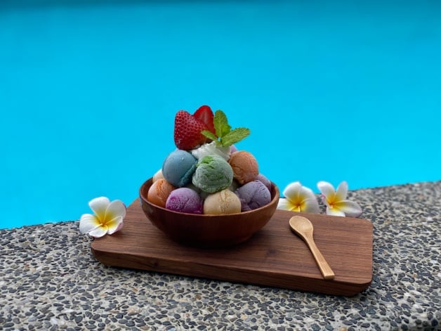 想要在飯店chill一下嗎?飯店推出夏日限定甜飲品,「午後彩虹冰」以甘蔗汁製成的冰沙,搭配紅肉火龍果、香橙、芒果、奇異果、柑橘甜酒、黑醋栗、紫心薯製成的七色水果冰球;「彩虹調酒」以highball為靈感,七款色彩與滋味各異的低酒精飲品,分別為覆盆子和威士忌、柳橙汁和伏特加、百香果和威士忌、小黃瓜和琴酒、藍柑橘香甜酒和伏特加、黑莓和卡沙夏、水果和蘭姆酒,妞妞們可於頂樓戶外池畔、行館交誼廳、梅園中餐廳、衛斯理自助餐廳點用!(OS:泳池山景美照記得拍)