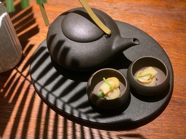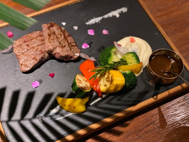 坐擁最佳的太魯閣峽谷景致,位於飯店頂樓的「交誼廳」,是專屬於入住行館旅客的獨享空間,週六和連續假期會推出限定的「主廚餐桌」,精選當季與在地新鮮食材入饌,搭配蘊含文化與故事性的餐飲創作,像是小米酒香檳、精選手工麵包、前菜(馬告番茄鮑魚、羊肚菌玉米雞等)、沙拉(花蓮洛神、白玉蝸牛)、湯品(干貝、松茸、絲瓜、茶香雞湯)、主餐(花蓮源興但馬和牛、碳烤原民蔬食)、甜品(濁酒冰沙、梅子凝凍)等,其中主餐使用的刀子居然是原民「草刀」!(菜單會不定時更換)