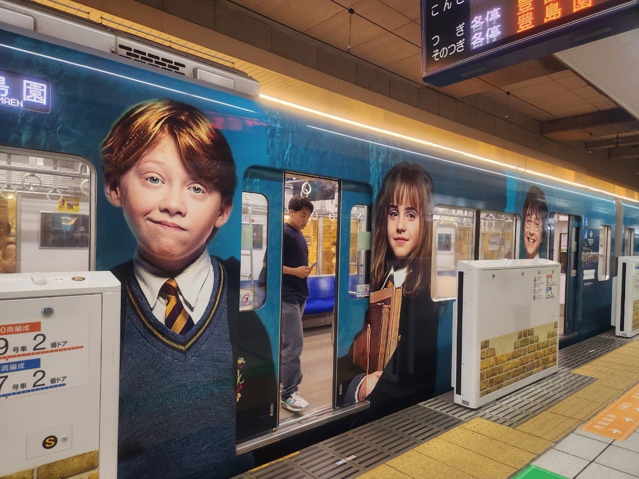 除了車站必拍以外,西武鐵道的列車也變身成為「哈利波特影城特快車」啦!不只是車體上放上了《哈利波特》系列電影的三位主角哈利、妙麗與榮恩,車內也佈置上了東京哈利波特影城的海報,讓妞妞們一路上都能享受魔法氛圍。
