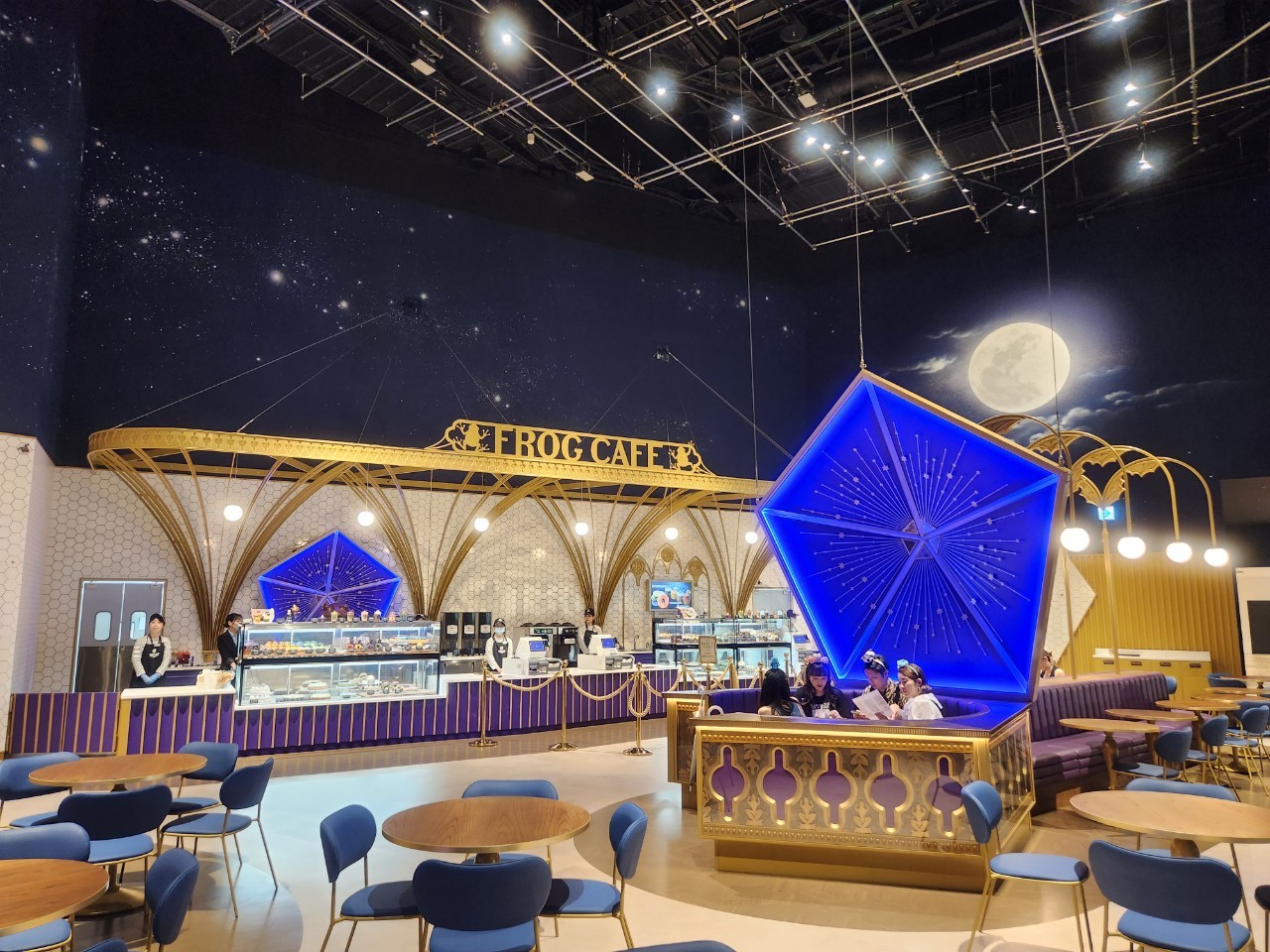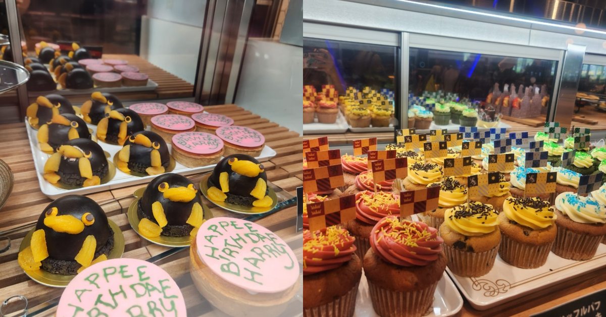除了有大廳餐廳以外,一旁的「巧克力蛙咖啡廳」同樣不容錯過!不只是能直接坐進巧克力蛙的盒子內,裡頭販售的巫師主題甜點更是不容錯過,尤其是海格做給哈利波特的生日蛋糕,更是被神還原在店內啦!