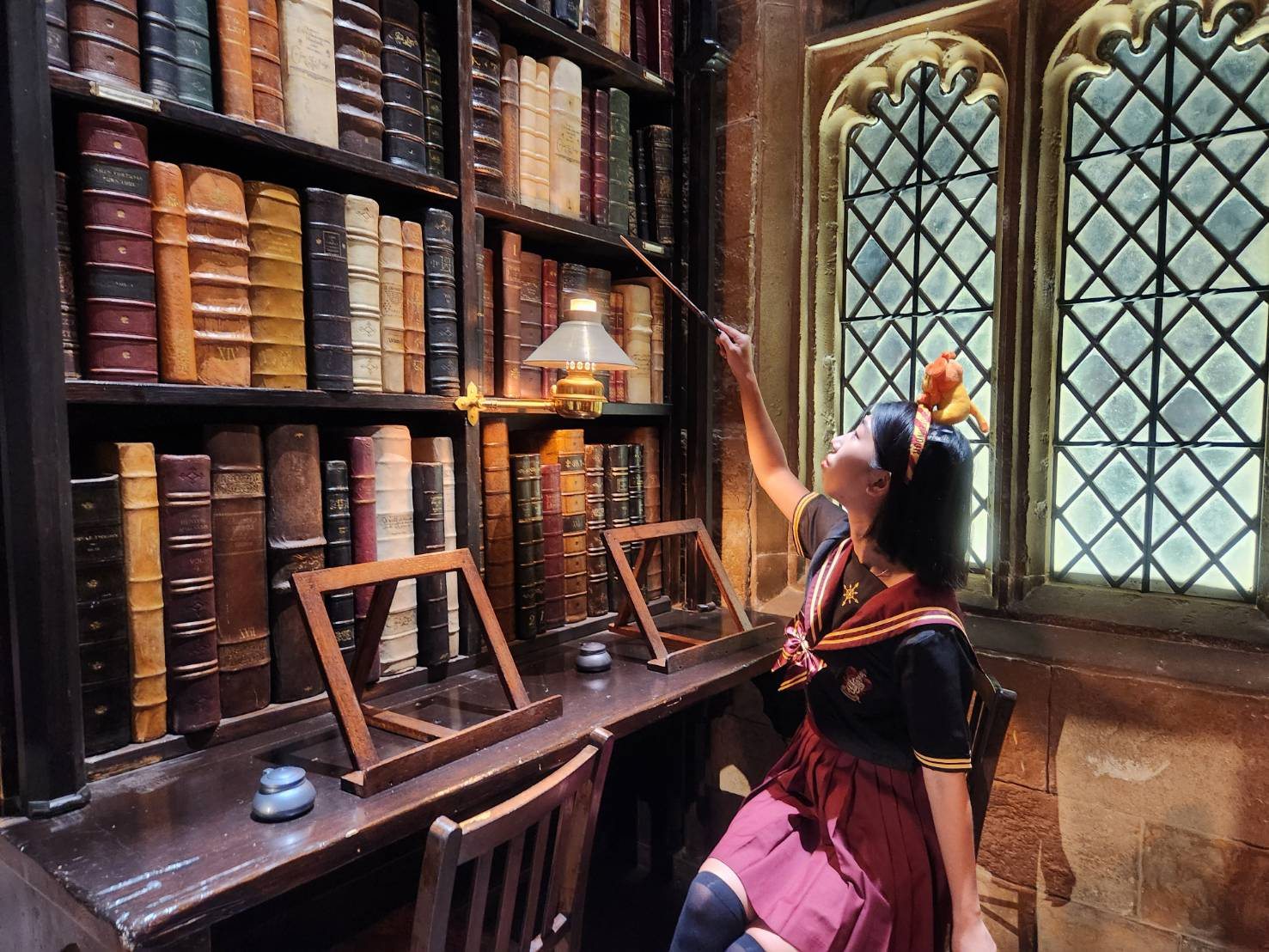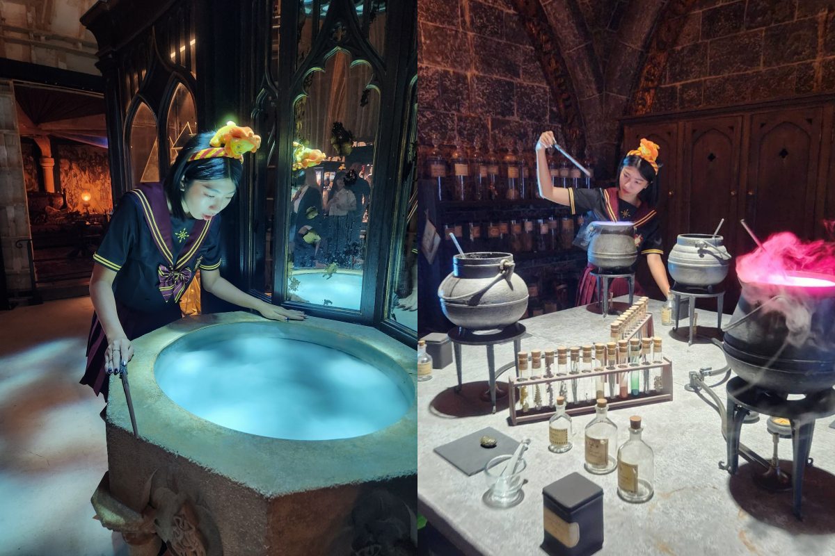 光在場景中拍照怎麼夠!東京哈利波特影城更設計了許多可以讓妞妞們與之互動的打卡點,包括有鄧不利多的「儲思盆」以及「意若思鏡」,以及可以讓妞妞們嘗試調製的「魔藥學教室」,還有妙麗最常去的圖書館等等,想要成為霍格華茲的學生嗎?那這幾個場景絕對要拍!