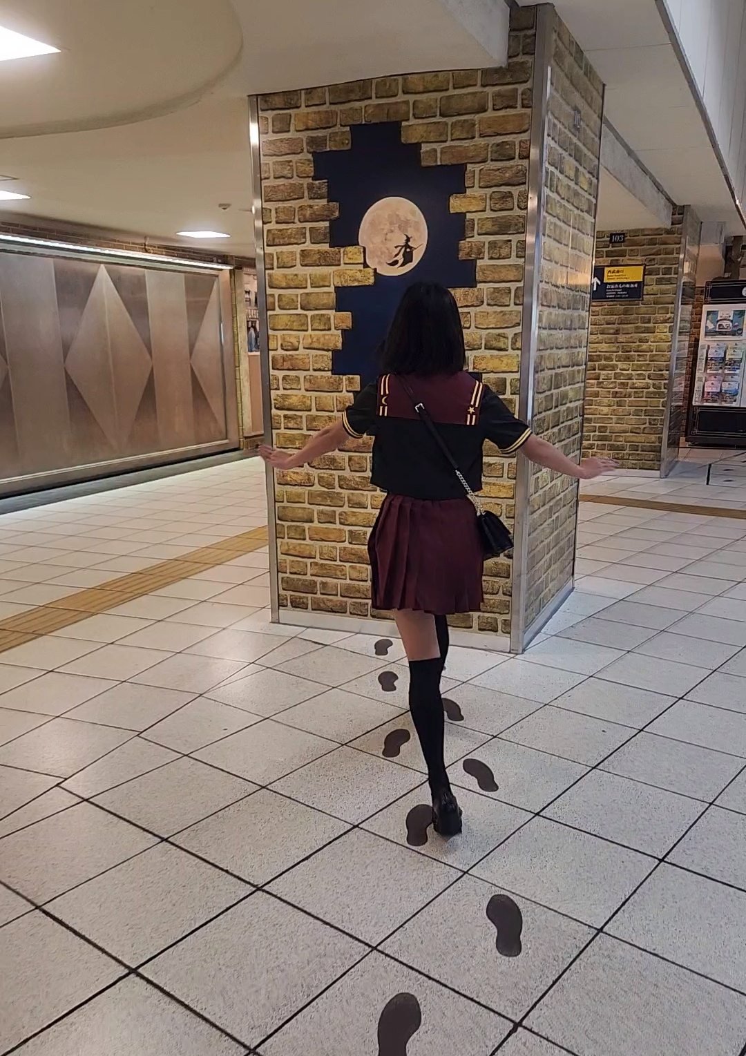 要來到「東京哈利波特影城」就得搭乘西武鐵道,從「池袋」站到「豐島園」站最快14分鐘直達,為了讓大家感受魔法世界的氣息,池袋站也佈置成了《哈利波特》中的倫敦國王十字車站,不止將月台的壁面改成磚牆風格,地上還有劫盜地圖中的腳印,電梯玻璃外觀也有許多貓頭鷹、魔法列車的元素!