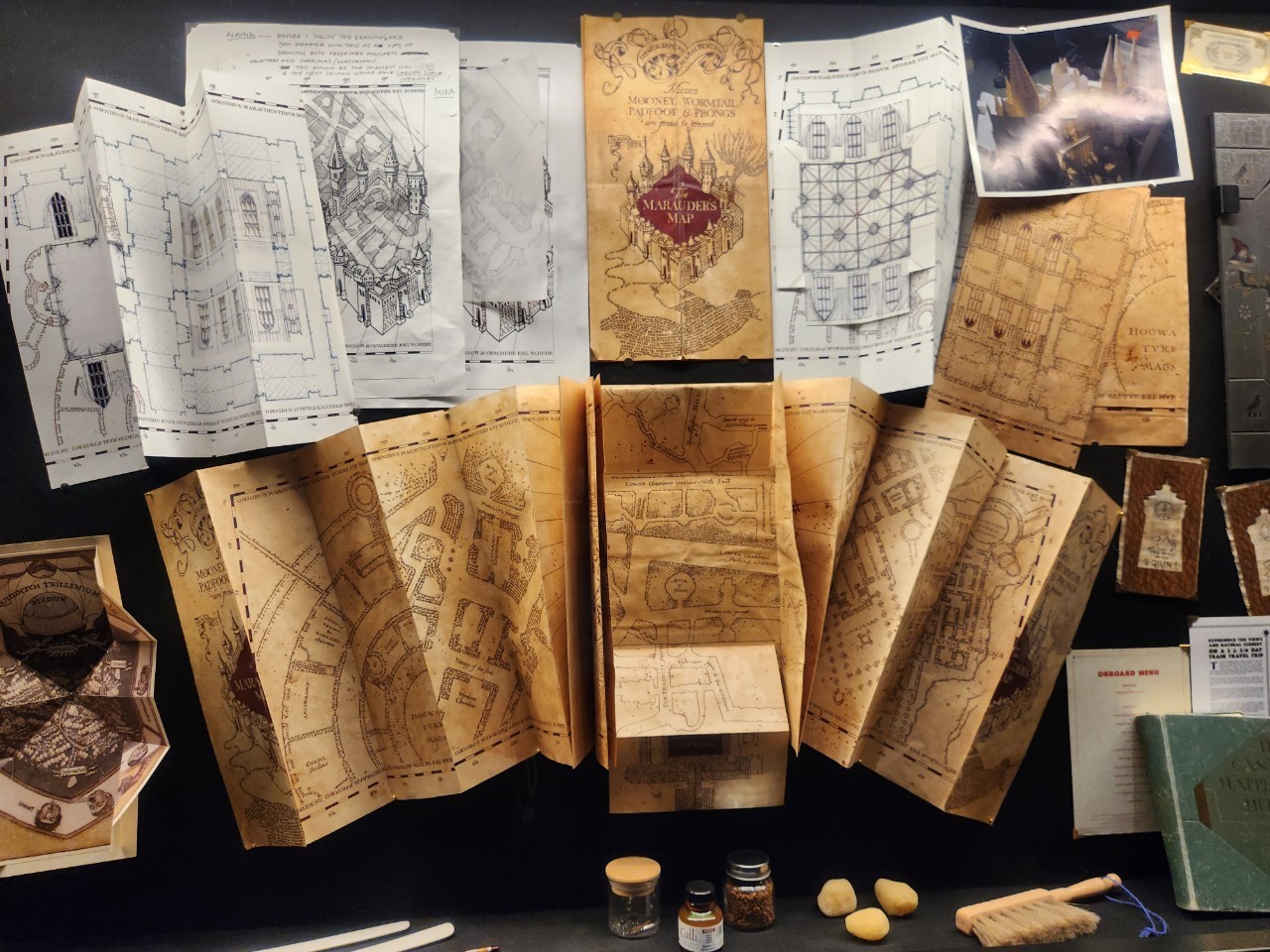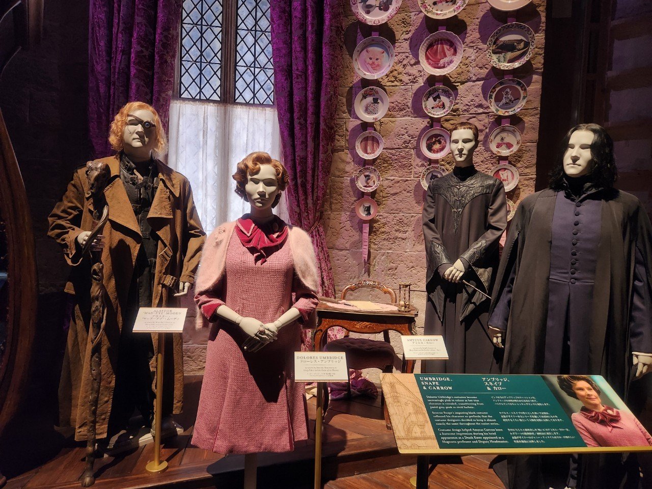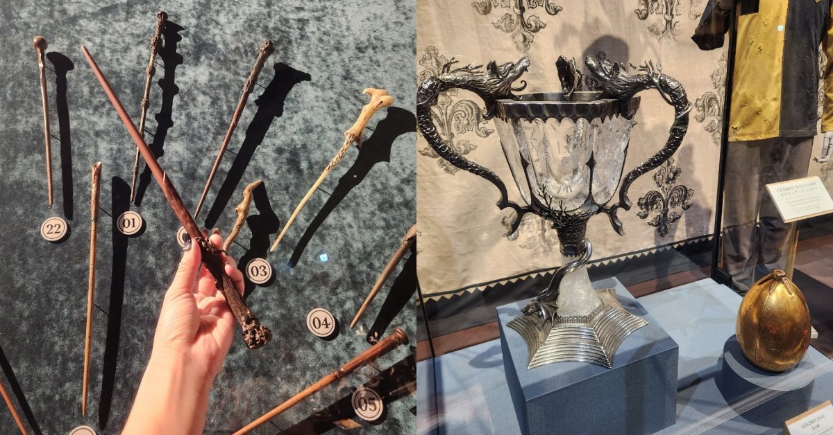 逛完整座影城,真的會對製作組感到讚嘆,他們在細節上的刁鑽真的非常用心,大到場景設計、食死人的面具,小到每封信與報紙上的字,妞妞們還能在櫥窗外仔細研究劫盜地圖,以及第四部曲《哈利波特:火盃的考驗》的中的火盃與金蛋,還有每一個巫師的魔杖等等。