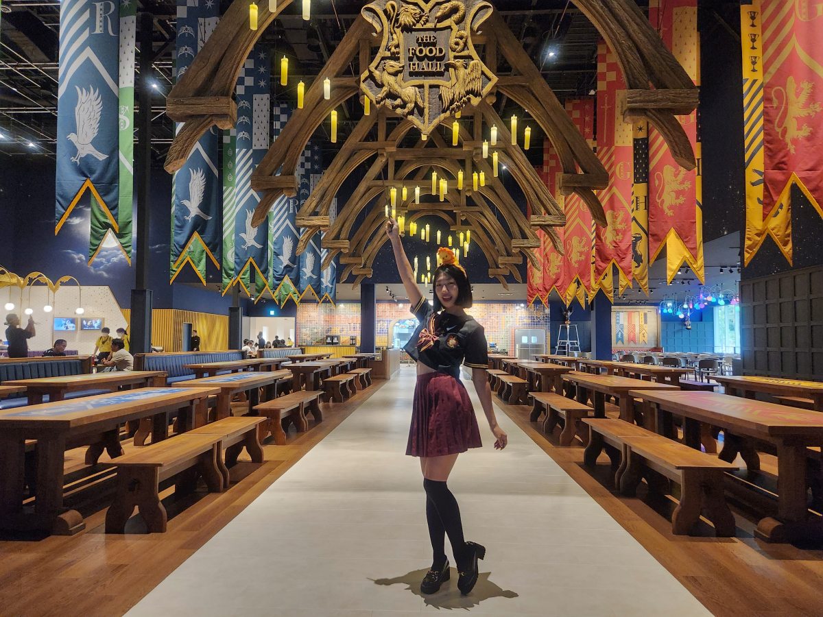 一進到館內就能看到裝潢成「霍格華茲餐廳」的座位區,四大學院的錦旗以及漂浮的蠟燭燈讓人彷彿一秒進到電影中,妞妞們也能體驗學生們的生活,一起在都會在這裡用餐、參加學校活動啦!