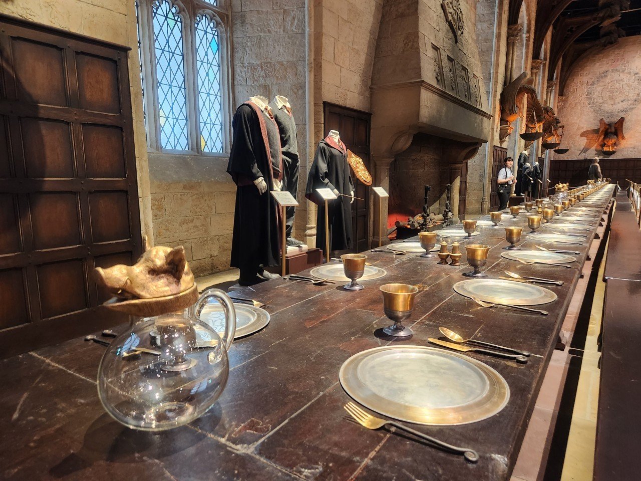 來到「東京哈利波特影城」最經典的電影場景絕對要優先拍好拍滿!當影迷打開大門進入霍格華茲餐廳時,四個學院的蛇、獾、獅子和老鷹形狀的火炬將印入眼簾,桌上的每一個餐具、師生所穿的服裝等等,在大廳內都能近距離探索細節。除此之外,大廳中會移動的樓梯、會講話的畫作也在影城中一一被還原,妞妞們絕對要打卡一番啊~