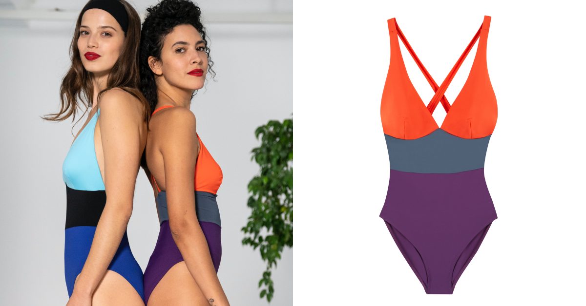 撞色泳衣