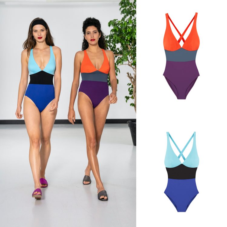 延續其 60 年代的背景設定,在度假系列中少不了的泳衣單品,品牌以連身的款式為主要的版型,配色上品牌巧妙的運用撞色色塊呈現,將其復古的氣息,透過泳裝的剪裁及配色呈現於其中。