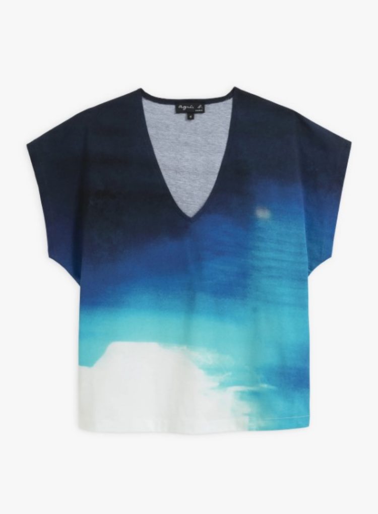 除了泳裝之外,本季亦推出許多便於搭配的短罩衫、T-Shirt及寬鬆的上衣,除了呼應夏日的季節運用條紋來搭配其印花外,Agnès 女士更以拍立得拍攝的 “Polariod” 主題影像,將其底片的偏光畫面化為印花,其靛藍的色彩,展現出有如蔚洋般的意象。