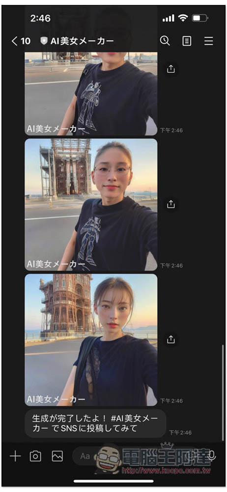 最近日本 AI Picasso 株式会社推出一項蠻有趣的 LINE 機器人:「AI 美妝師(AI美女メーカー)」,加入好友之後,上傳你想把臉變成美女的照片,就會幫你自動透過 AI 轉換出四張美女圖,不用說任何一句話,無論男女都可以,我測試兩張阿達的照片,套用的效果可說相當不錯,尤其是最後一張,非常的正。