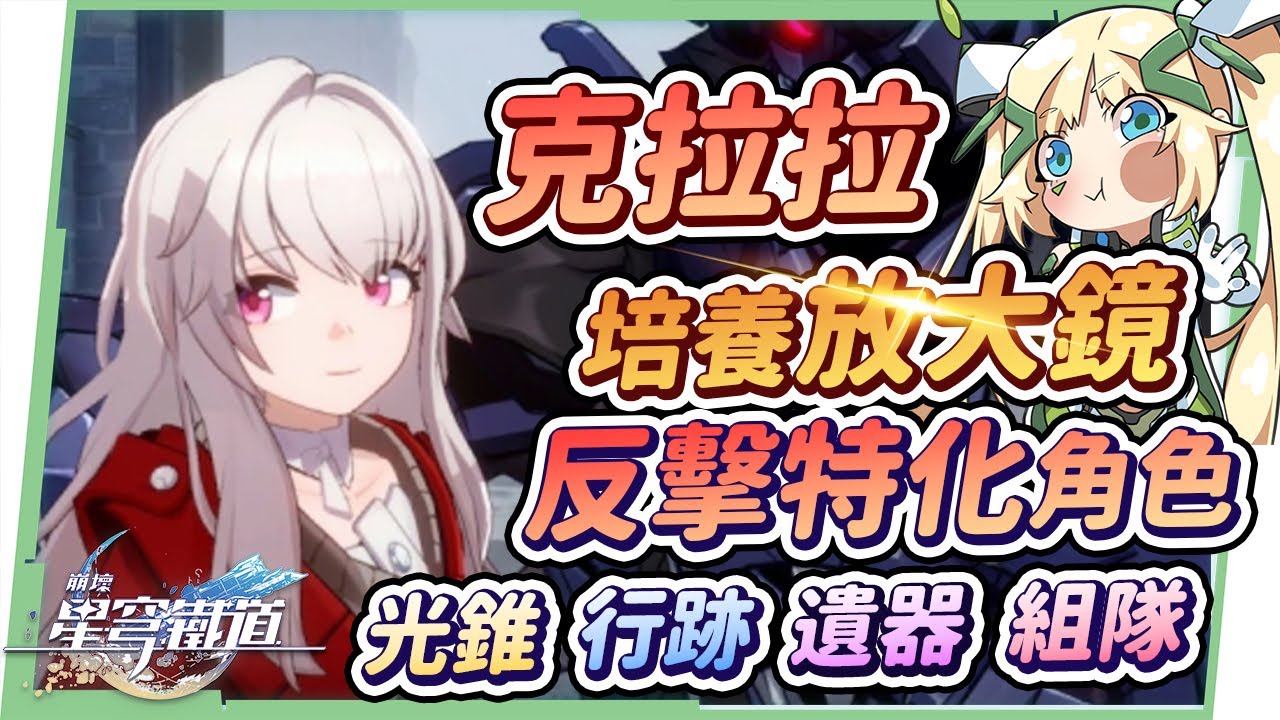 哈囉哈囉! 我是虛擬Youtuber璐洛洛,近期會開始趁一些空檔時間來做常駐角色的培養攻略,首先要先帶來的就是蠻多人敲碗的克拉拉,克拉拉也是洛洛始發躍遷裡面出的五星角色,而從開服到現在,相信也有很多人可能手上也都有克拉拉了,克拉拉主要作為一個「反擊流」的核心角色,關於克拉拉的一些配隊與培養也可以提供給一些剛入坑的萌新們參考,稍後將會帶來克拉拉的角色定位、技能特性與行跡加點順序、光錐/遺器/隊伍搭配建議等內容。