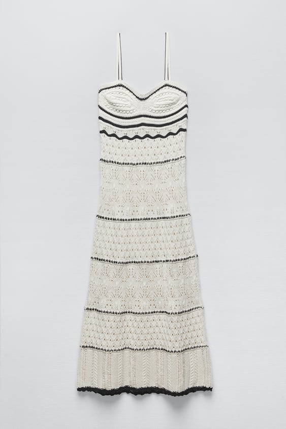 用針織帶來獨一無二的浪漫質感!經典的黑白色系在炎熱的夏天看起來格外清爽,每一層不同的鉤織針法細節感滿滿,略為合身的剪裁非常適合用來凸顯身材曲線!(官網詳細售價:NT$ 1,490。)