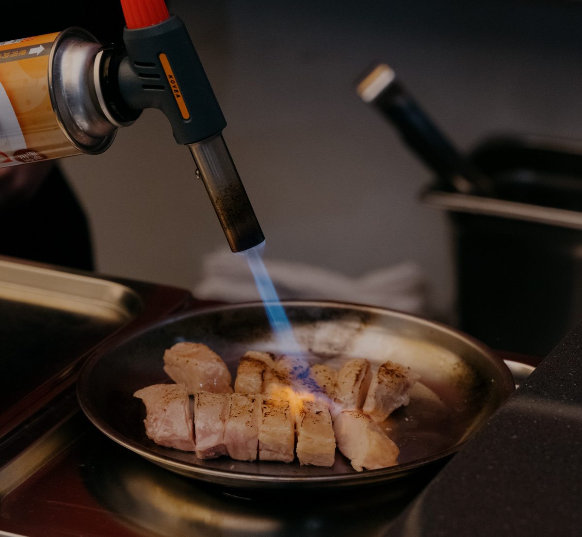除此之外不容錯過的就是朱雀的牛肋條,搭配牛筋一同熬煮以及些許香料提味,為了增加適口性,燉煮後加入咖哩醬汁提升風味,上桌前同樣以噴槍炙燒的方式,將表面以直火噴烤至焦黃帶出油脂香味,牛肋條的軟嫩與牛筋的Q彈搭配,讓口感上多了不同層次的變化。