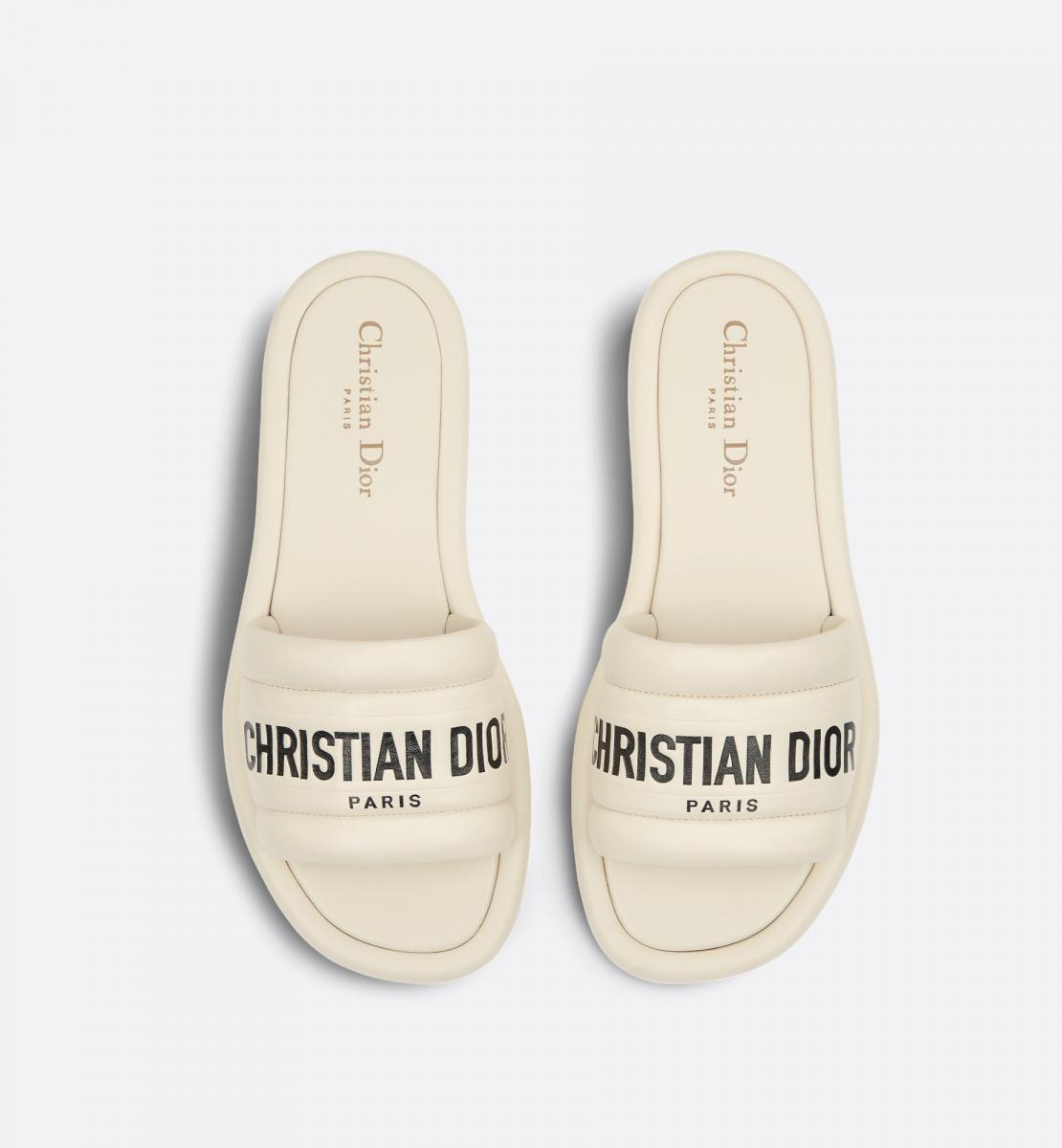 就算只是一雙拖鞋也不能馬虎!這小羊皮製成的白色拖鞋,簡約的圓潤線條,搭配非常搶眼的壓印 Christian Dior Paris 標誌,為你夏日的穿搭增添奢華的時髦感!(商品售價:NTD26,000)