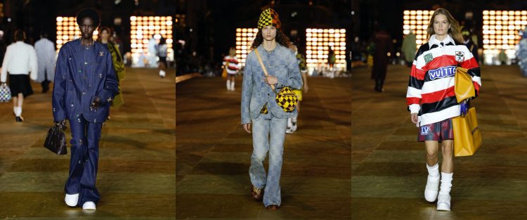 本季大秀選址於巴黎的新橋,該座橋墩不僅是巴黎人的重要樞紐,帶著濃厚的歷史背景,更成為許多人必訪的景點,同時該座橋樑更是通往 Louis Vuitton 的必經之路,這次 Pharrell Williams 在這座橋上鋪上淡金色的裝飾,品牌經典的棋盤格(Damier)呈現其中,而這個標誌性的符碼已經給本場大秀做了最好的預告,同時以品牌總部為背景的選址,亦展現 Pharrell Williams 的野心。