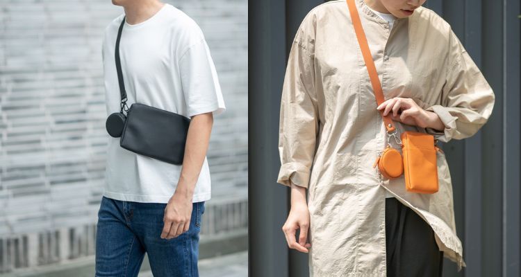 可以依照需求自由組合是這個新系列單品最大的賣點!只要一條肩帶就可以搭配從圓餅狀的小收納袋、裝下日常隨身物品的小包,就連筆電書本也都有足夠的尺寸收納。也不限制可以串連兩三個不同的尺寸包包,讓你分類拿取更加方便!