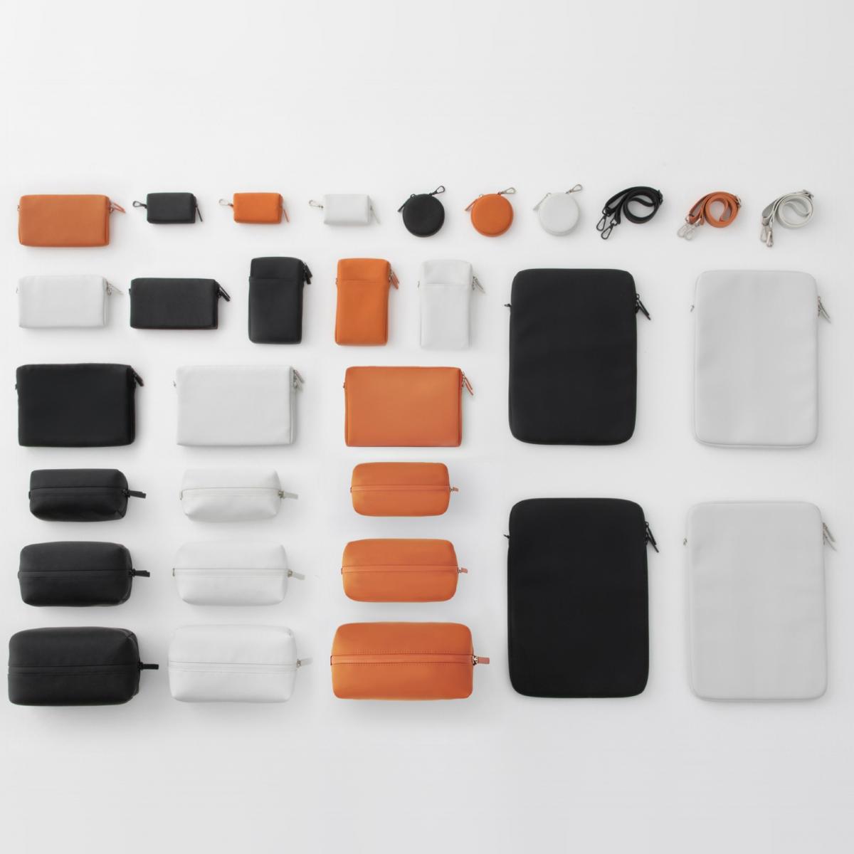 收納包的價位落在150-650元,依大小與縱橫型共設計多達9種款式,還有白、黑、橘3個基本的色系可以自由搭配。除此之外也可以購入有合適收納功能包形,當作擴充吊掛在自己平日使用的小包外側或當內膽包。也可單純作為電腦包、化妝包使用,全方位滿足一物多用的極簡精神。
