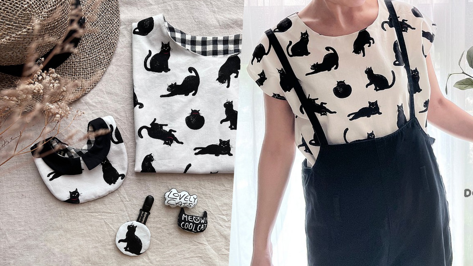 如果想要跟寶寶一起穿親子裝,也沒問題喔!各種姿勢的可愛小黑貓佔領衣服各處、圍兜上,就連裝平安符的小袋袋也有小黑貓守護,還有同系列的奶嘴鍊,都超級可愛。不僅好看質感也非常棒,除了自用,也很適合作為彌月禮盒送禮喔!