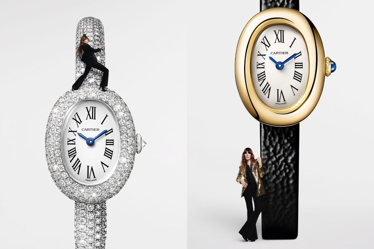 在千變萬化的「腕錶」世界中,卡地亞在打破了傳統的圓形錶盤,以多邊形及拉長的圓形顛覆既有設計,除了以Art Deco裝飾藝術風格方型框的「Tank」腕錶系列、具80年代高雅風采的「Panthere」系列,一定也要有個寶位留給「Baignoire」腕錶系列,本次更推出迷你款尺寸,縮小的橢圓造型外表,將女性的優雅發揮極致,更合適現代低調的時髦女性。此外,本次更邀來法國藝術家「Lou Doillon」,在18歲生日時,收下母親贈送的Baignoire腕錶,從此「Baignoire」對她來說有著非凡意義的存在,身為一個擁有多面向的藝術家,總是給人瀟灑有個性的形象,完美吻合「Baignoire」崇尚自由風格的精神。