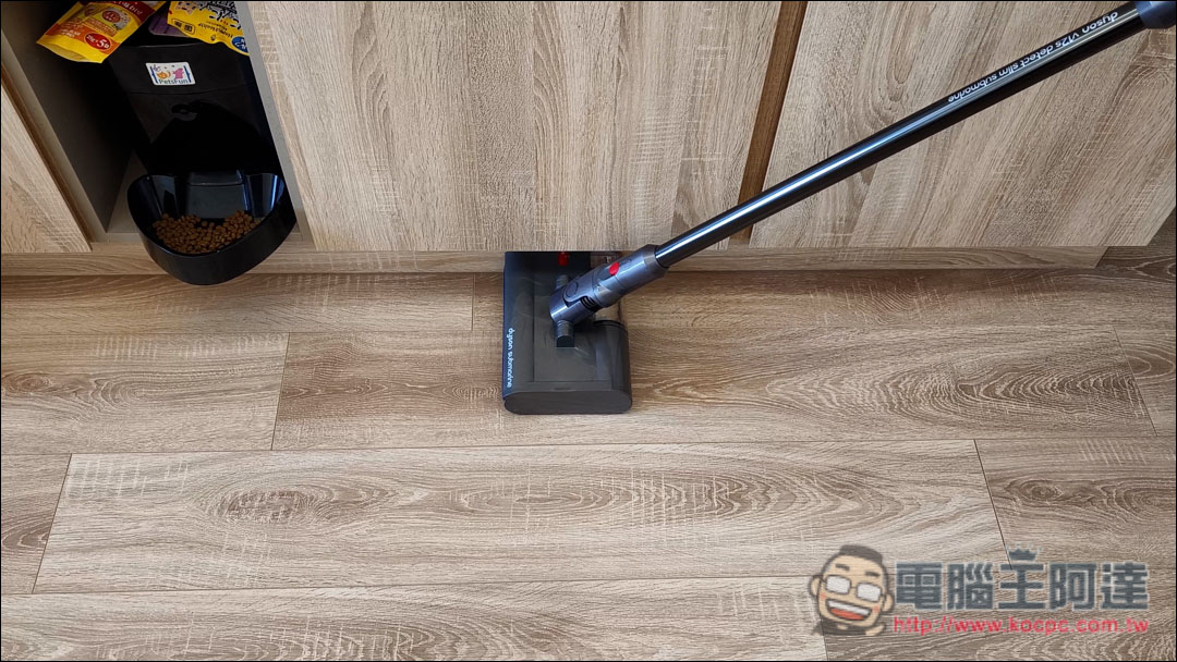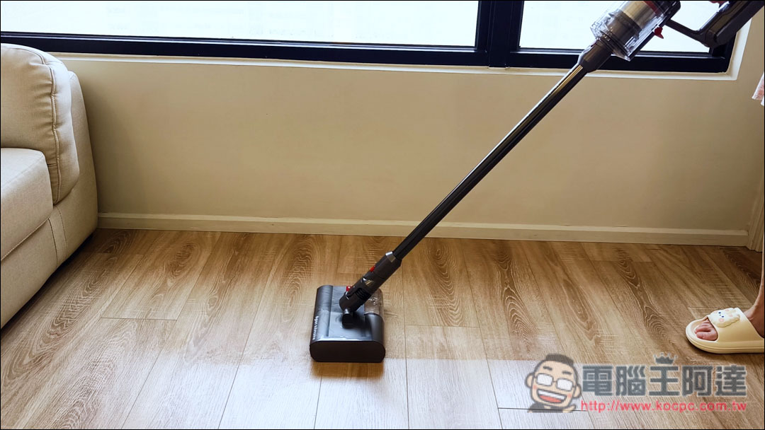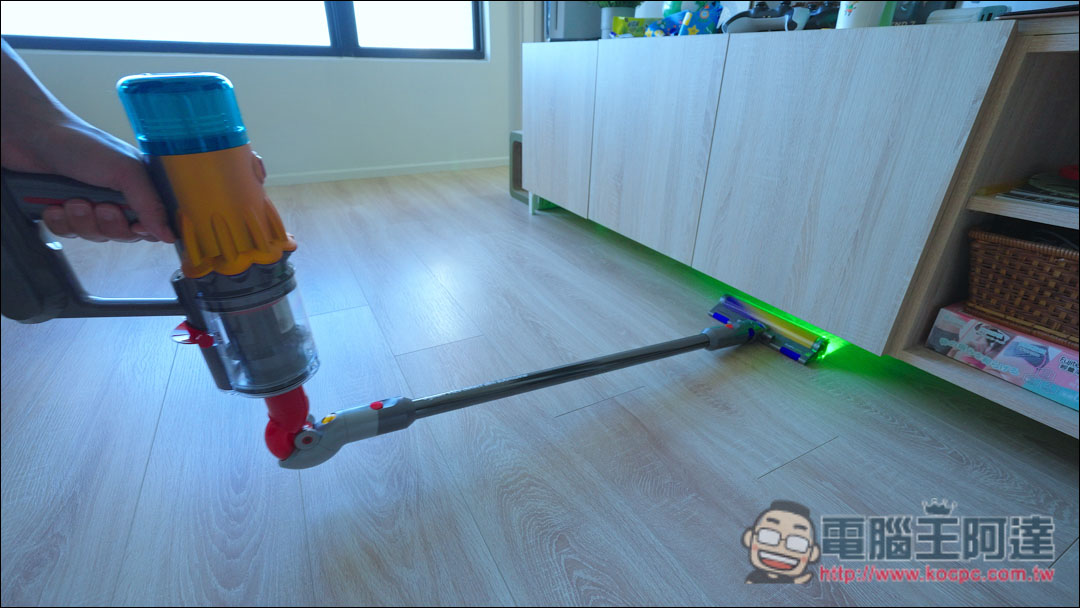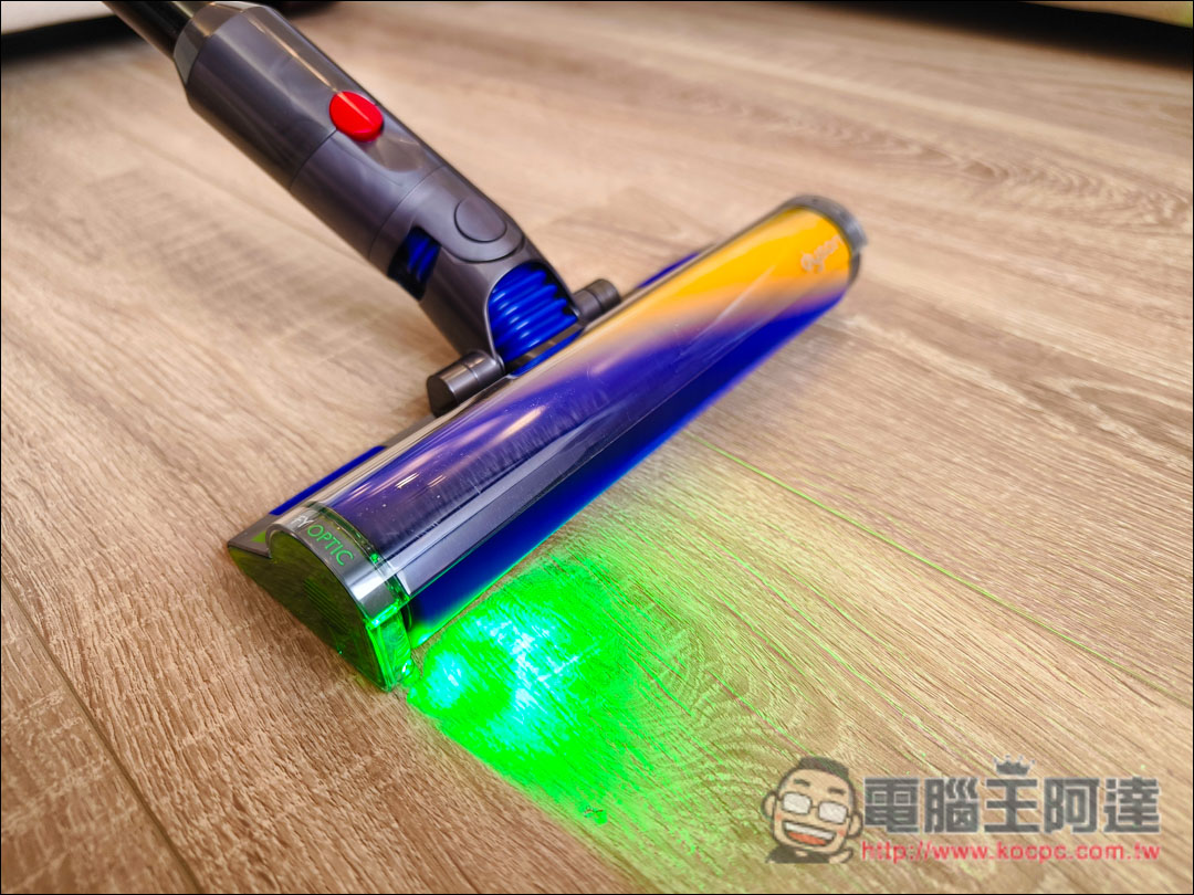 尤其家具下方或是暗處,有了智慧光學偵測科技,可以清楚看見地板髒污,徹底清潔,這個功能阿達覺得相當不錯,對粉塵過敏、愛乾淨甚至有一點強迫症的人來說非常好用,現在阿達家中清潔地板幾乎都是用這個吸頭。