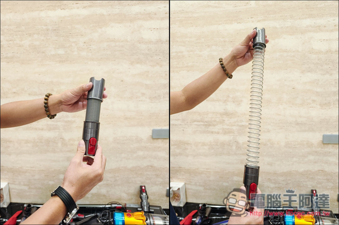 這幾個吸頭都可以配合【伸縮軟管】使用,最長可以延伸61cm,使用起來會比較好操作,清潔上也會更輕鬆。