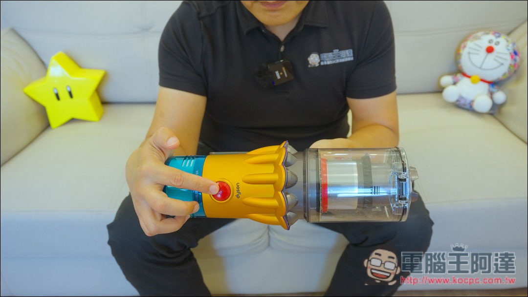 先來看一下V12s的主機部分,V12s的開關採用單鍵電源控制,不像以前舊款在手把處要一直握壓著開關,手持時可以整隻手握住主機,使用上更加輕鬆方便。