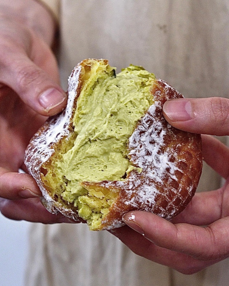 不得不說「奶油餡料甜甜圈」實在太罪惡了...內餡填滿了新鮮卡士達奶油的「custard」,濃郁的奶香味迴盪在嘴裡,讓人吃下一口就難以忘記!結合覆盆子和卡士達奶油的「framboise」,其恰到好處的酸甜度、滑順的滋味,都十分受女性族群的歡迎!超人氣的「pistacchio」以獨特的開心果味脫穎而出,其適度的甜度和飽滿的奶油,就算不是螞蟻人也可以輕鬆駕馭。