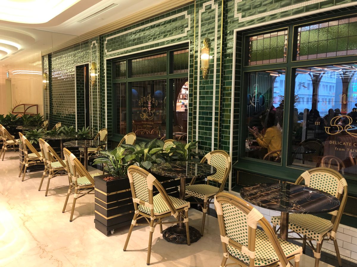 裝潢以老是復古飯店為發想,仔細一看霸台後面的格子真的有房間號碼跟鑰匙的喔!走廊上的座位也一點都不馬虎,大理石的桌面配上藤椅,復古又不失優雅。餐廳從中午就開始營業,除了有許多中式餐點外,還有紅白酒與甜點能選擇~而且妞編輯推薦大家在吃飯前,可以先來戶外網美牆拍個照,復古磁磚加上壁燈好適合穿個旗袍來(笑)。