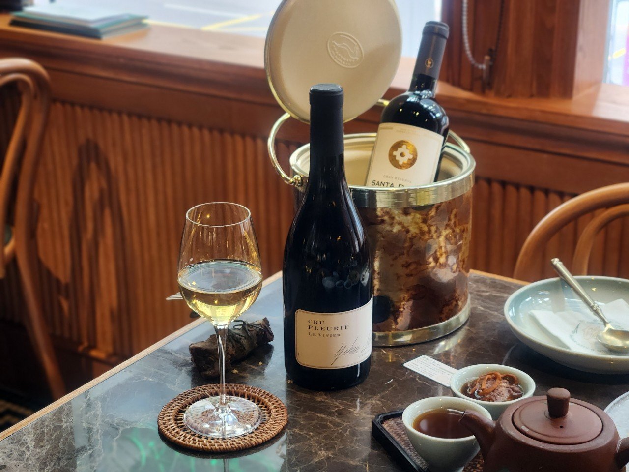 第二款是東法的「Fleurie Le Vivier 2019」,全程手工摘種採收,使用野生酵母,不加糖、極少量二氧化硫,單寧細緻深幽,魔幻寫實般的香氣口感,適合搭配九層塔醬海鮮蝦餅、番茄水晶甜蝦,纖細酒體與精緻海鮮相呼應。