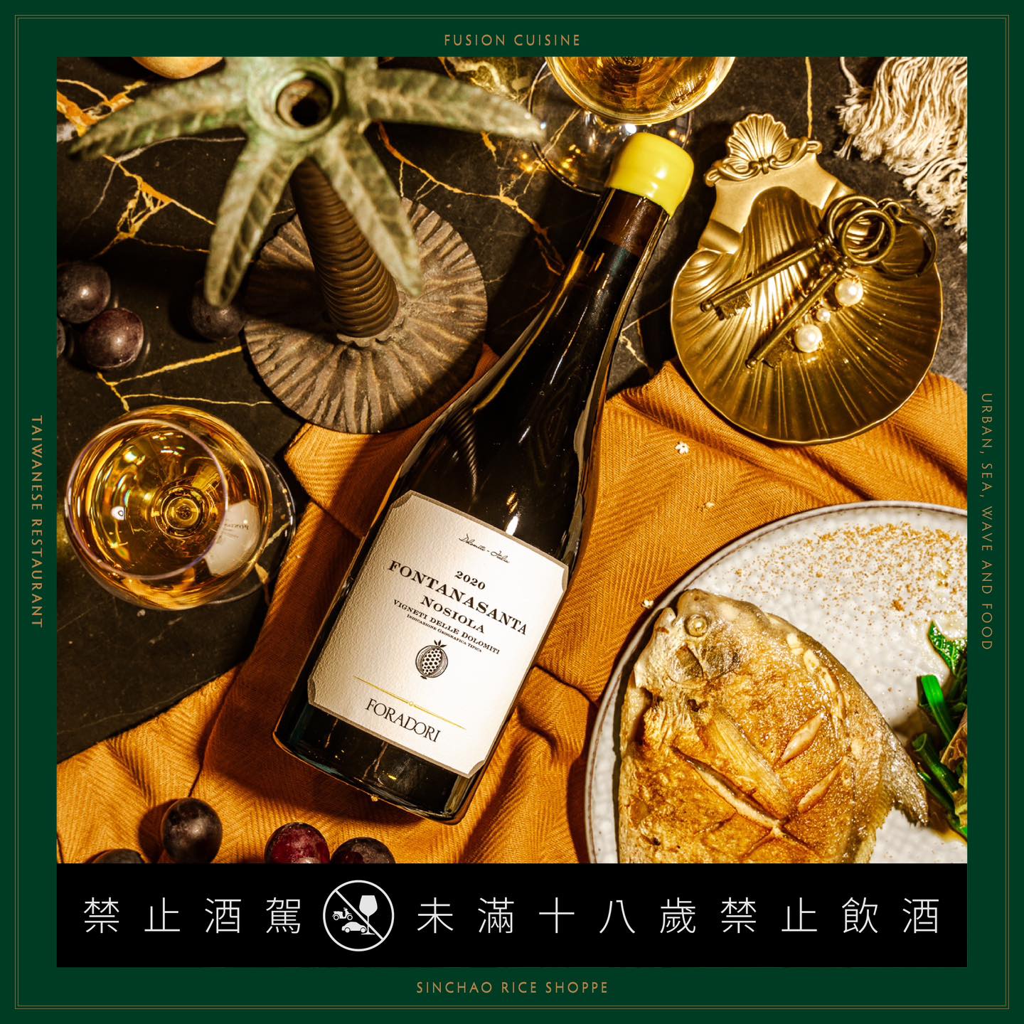 最後是北義的「FONTANASANTA NOSIOLA 2020」,口感柔軟酸度低,喝起來極度優雅細緻,帶有榛子、檸檬、柑橘香與淡淡礦石口感,意外地很適合搭配涼拌冷菜皮蛋剁椒茄子以及乾煎鯧魚,新鮮自然風味在味蕾上輕柔漫舞。