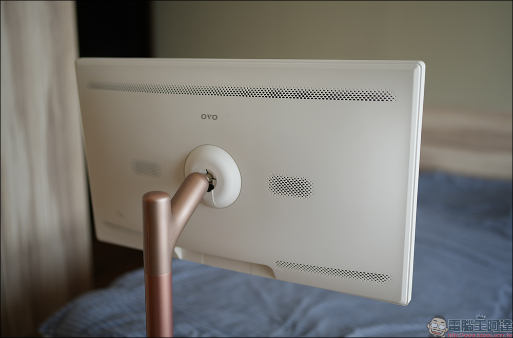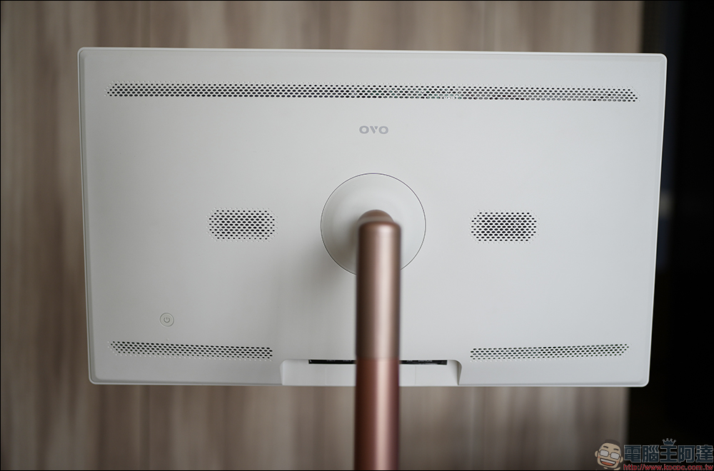 設計方面, OVO TT1 推推閨蜜機採用簡約的白色外殼,搭配玫瑰金色的支架增添典雅質感。